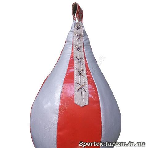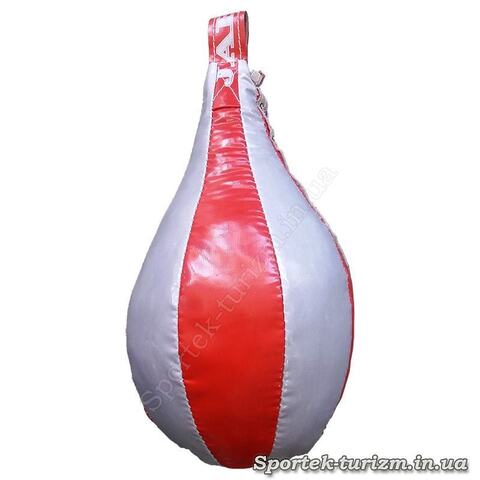 Набивная каплевидная боксерская груша размером 40 на 20 см. крепится одним концом сверху на крепление. Также может натягиваться между эластичными шнурами.