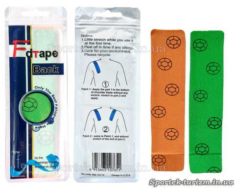 На упаковці намальована схема поклейки кінезіотейп пластиру. Таким чином Ви самі зможете наклеїти їх без особливих знань.