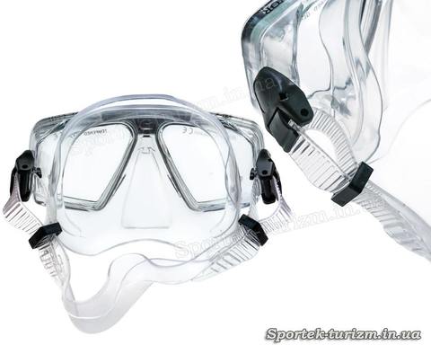широкий и мягкий ремень надежно фиксирует маску, а удобная система регулировки ремня на пряжках позволяет регулировать его длину, даже в перчатках гидрокостюма;