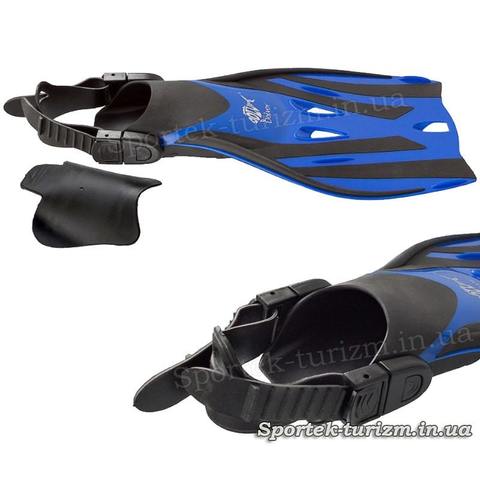Ласти для плавання Dolvor Froggi F52JR з відкритою п'ятою і регульованим розміром.