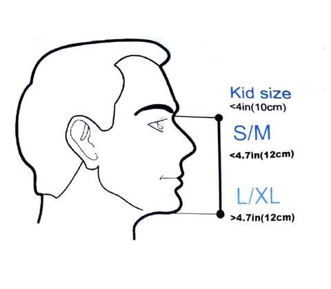 При подбооре размера маски измерьте расстояние от переносицы до низа подбородка.