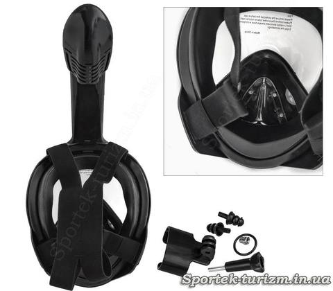 Маска для снорклинга с дыханием через нос YSE-10 с креплением для камеры GoPro и берушами для ушей в комлекте.
