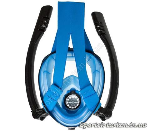 Клапан отвода позволяет нырять во время волн. Трубки легко очистить, приподняв маску и наклонив вниз.