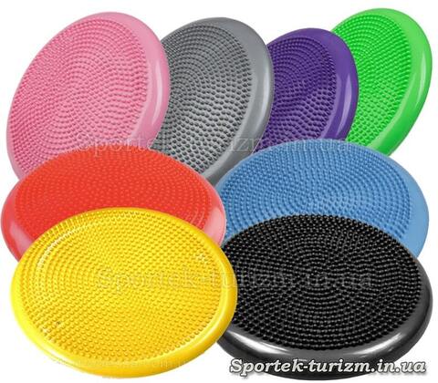 Масажний надувний диск діаметром 33 і товщиною 6 см може витримувати вагу тренується до 120 кг.