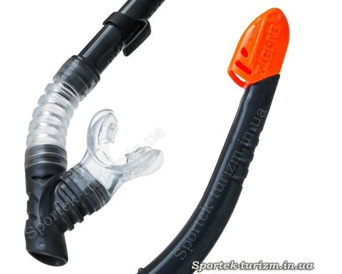 конструкция трубки предохраняет от попадания воды при погружении пловца под воду.