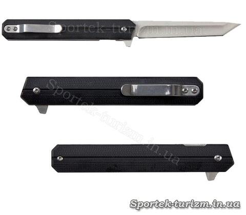 Накладки на рукоять выполнены из стеклотекстолита G-10, известного своими свойствами выдерживать высокие ударные нагрузки, и имеет цепкую поверхность, что предотвращает выскальзывание.