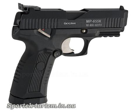 Газоваллонный пневматический пистолет Baikal MP-655К ("Байкал" модель МР-655К) 4,5 мм является репликой пистолетя Ярыгина и предназначен для развлекательной, тренировочной стрельбы и приобретения первоначальных навыков в обращении с оружием.