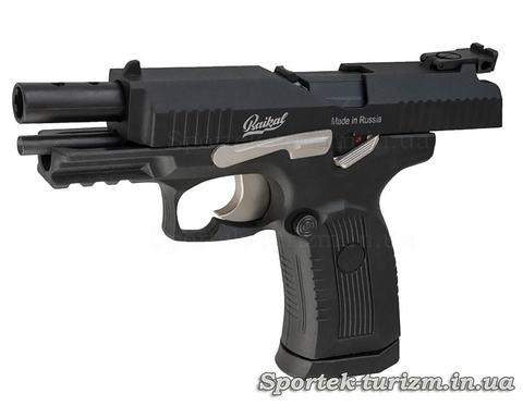 Затвор изготовлен из легкого металлического сплава, а рукоятка из доброкачественного пластика.