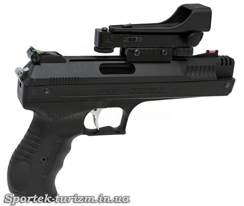 Вага пістолета разом з коліматорним прицілом 830 грам.