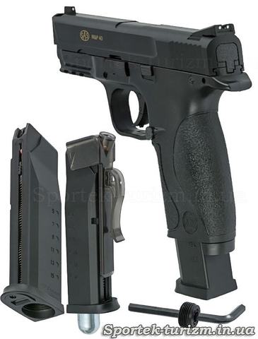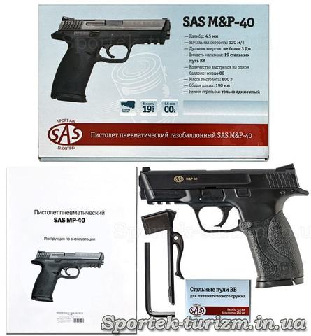 Модель SAS S&W MP-40 – практически точная копия американского пистолета "Military and Police" компании Smith & Wesson. Это оружие с 2005-го года серийно выпускается в США и предназначено для использования в правоохранительных органах.