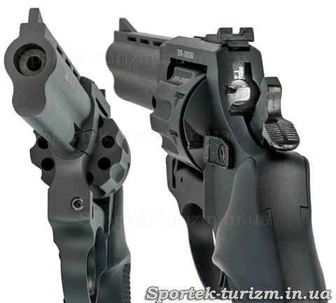 Пластиковая рукоятка позволяет уверенно и цепко держать оружие в руке, а 4.5 дюймовый ствол делает револьвер хорошо сбалансированным по весу и при выстреле он не тянется вниз.