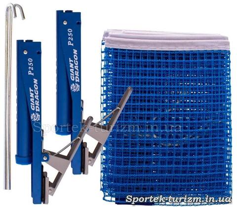 Нейлонова сітка Giant Dragon P250 з кліпсовим кріпленням для гри в настільний теніс (пінг-понг) стандартних розмірів.