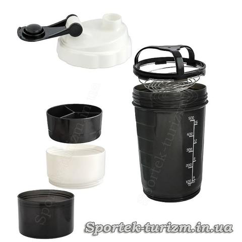 Шейкер трехсекционный Spider Sport Bottle 500 мл предназначен для приготовления спортивного питания.