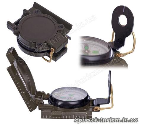 Цей компас оснащений прицільною ниткою, лінзою і лінійкою, стрілка і циферблат розташовується в спеціальній рідині, що дає змогу їй швидко встановлюватися в напрямку півночі всього за кілька секунд.
